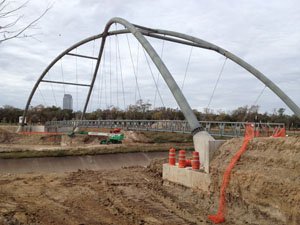 Barnhart Constructors has developed two exotic bridge designs for the city of Houston; a pedestrian bridge over Brays Bayou and another in Tierwester. Construction of the Brays Bayou bridge was completed in 2012.